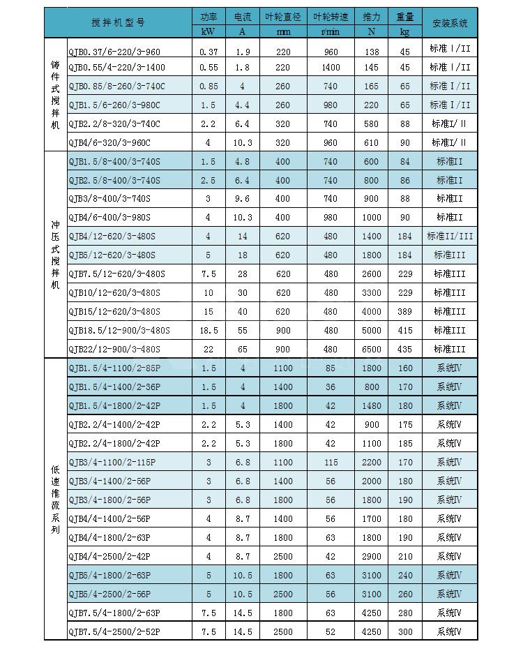 QJB型潛水攪拌機可分為混合攪拌和低速推流兩大系列。