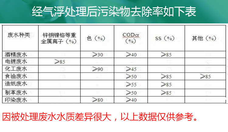 溶氣氣浮機(jī)主要用于固—液或液—液分離。通過溶氣和釋放系統(tǒng)在水中產(chǎn)生大量的微細(xì)氣泡,使其粘附于廢水中密度與水接近的固體或液體微粒上,造成整體密度小于水的狀態(tài),并依靠浮力使其上升至水面,從而達(dá)到固—液或液—液分離的目的。在水處理領(lǐng)域氣浮機(jī)應(yīng)用于以下方面:去除各種工業(yè)和市政污水中的固體懸浮物、油脂及各種膠狀物的設(shè)備。該設(shè)備廣泛應(yīng)用于煉油、化工、釀造、植物油生產(chǎn)與精煉、屠宰、電鍍、印染等工業(yè)廢水和市政污水的處理。