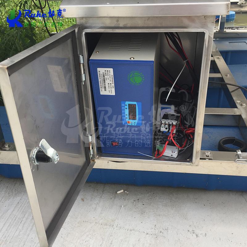 3、將增氧機(jī)安裝在浮船的中央,防止運(yùn)轉(zhuǎn)中自行回轉(zhuǎn)傾翻。